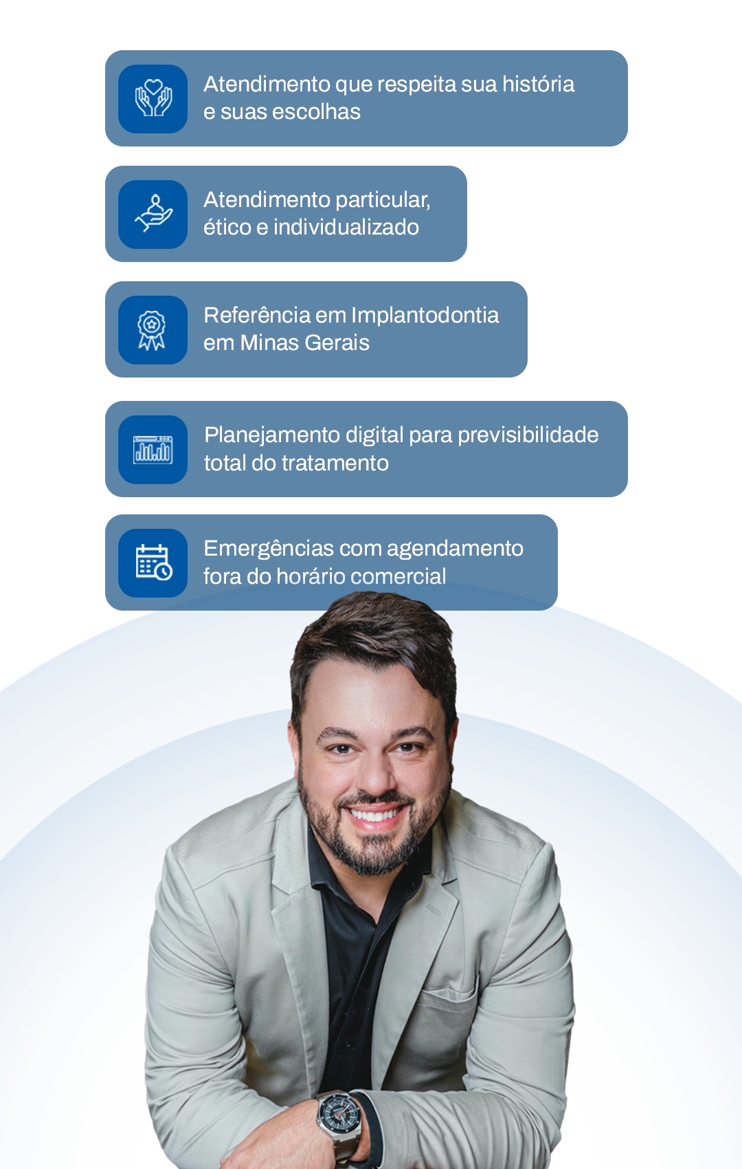Com sólida formação e anos de experiência, Dr. Breno Souza é um dos profissionais mais respeitados da implantodontia em Minas Gerais. Especialista em reabilitação oral, ele entrega resultados duradouros, funcionais e estéticos — sempre com ética, sensibilidade e tecnologia de ponta.